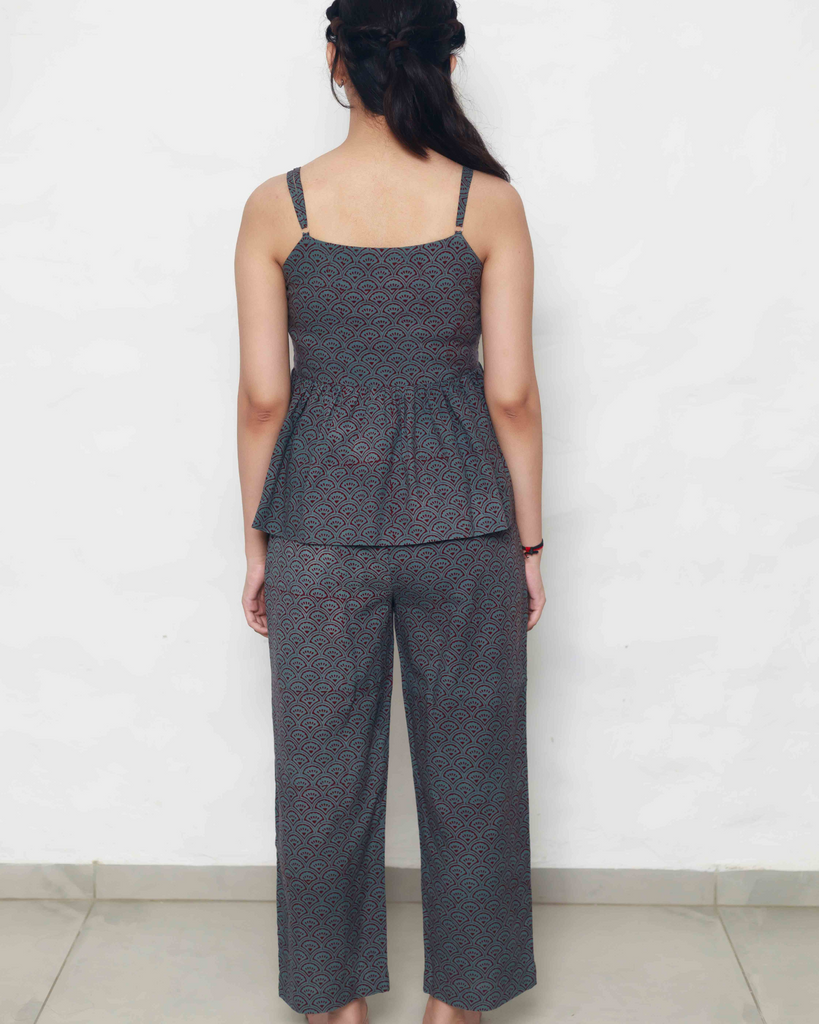- Co-ord set crafted from naturally dyed & hand block printed cotton fabric