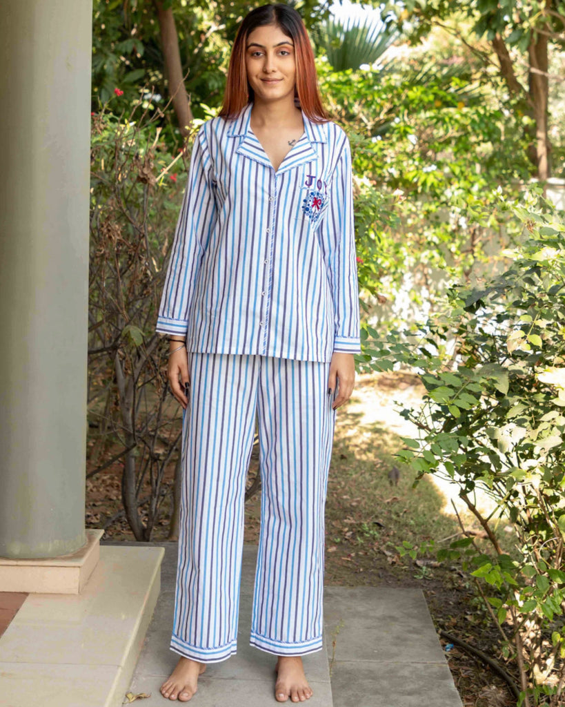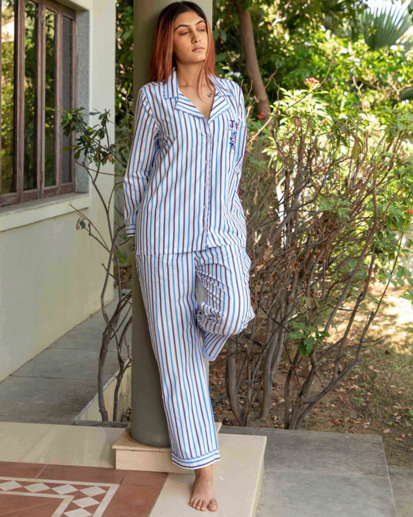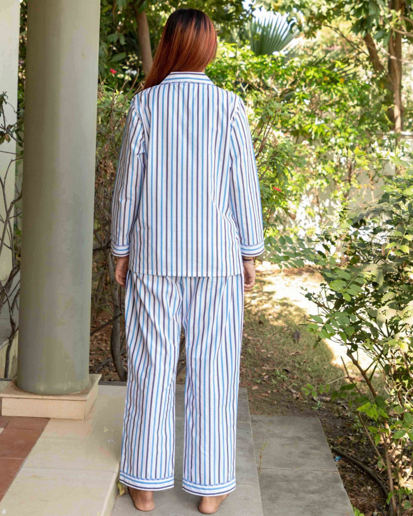 Crafted with breathable, 100% cotton fabric, the 'Sea Salt Stripes' pyjama set is comfortably stylish. With a classic style, it is perfect for nights of restful sleep and relaxation.