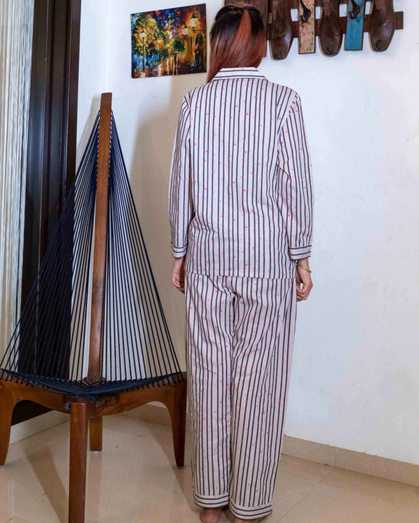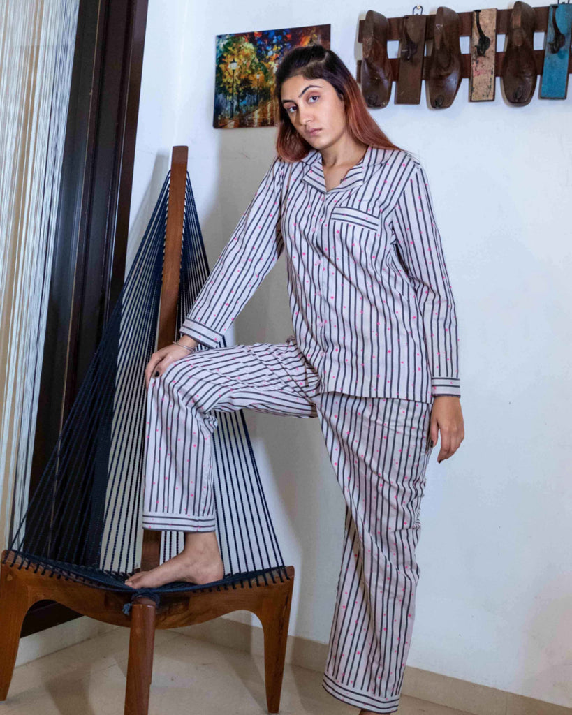 This Stars in Horizon pyjama set offers classic style and luxurious comfort with a lapel & notched collar and 100% soft cotton material. Perfect for a good night's sleep, this comfortable sleepwear allows for a restful night's rest.