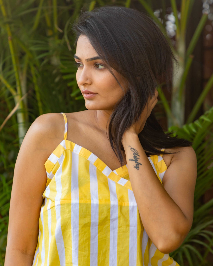 This summer, stay cool and comfortable with the 'Lemonheads' shorts set. Featuring a chic camisole sleepwear, these sleep shorts are designed with utmost comfort in mind. Crafted from lightweight, breathable cotton fabric, you'll enjoy great airflow while you sleep. Keep cool and look chic.