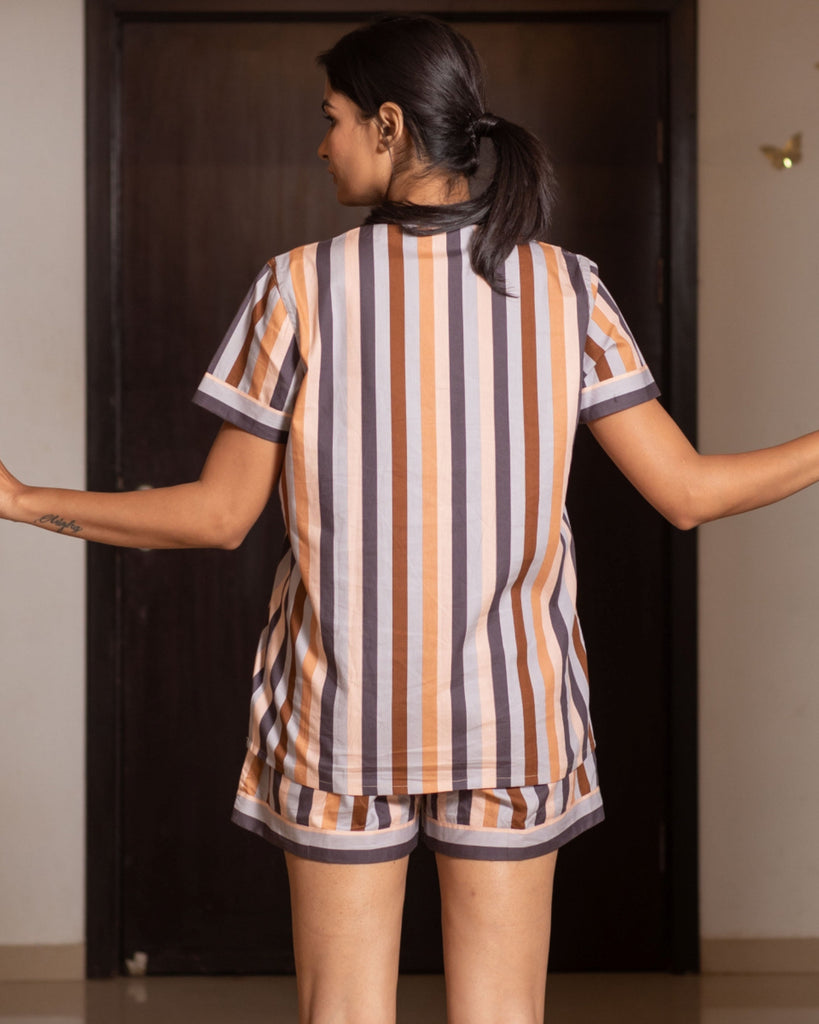 These stylish Monochrome shorts set feature an even stripe pattern and classic monochrome colorway. With an overlap style, these shorts are the perfect sleepwear choice for any season.