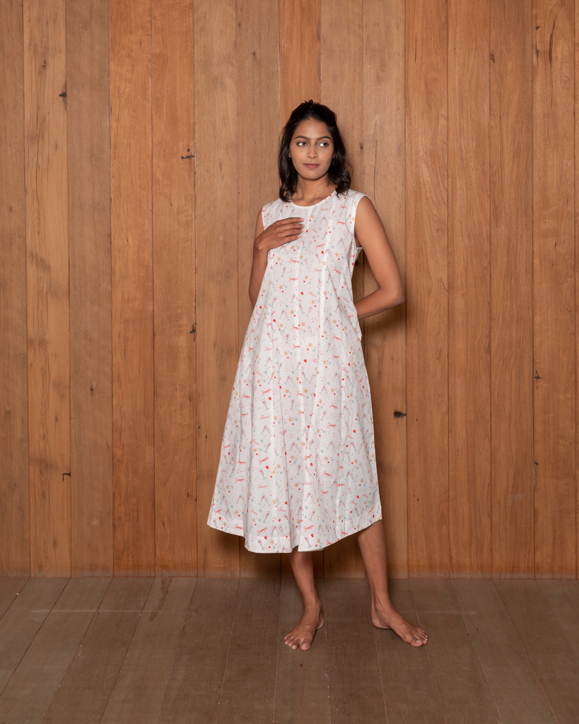 Inspired by summer season celebrations, long A-line dress is a must have. It's comfortable, relaxed fit and 100% pure poplin fabric will keep you clam in hot summer season.