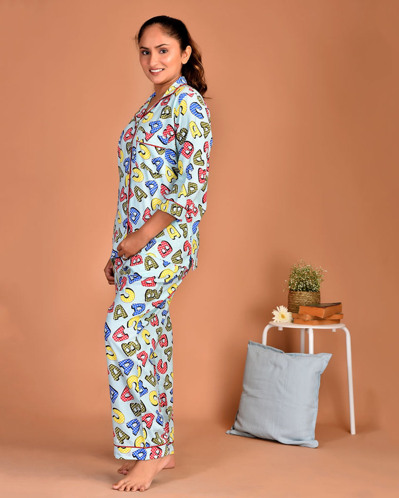 Crafted in soft cotton fabric, this notched collar pyjama set has the relaxed fit, which serves you comfort and ease.