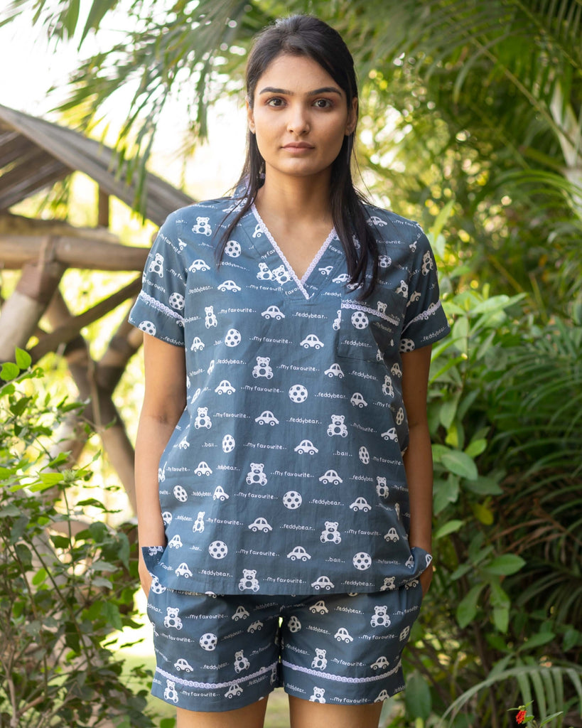 Start your summer off right with these "Childhood Memories" shorts sets! With this fun sleepwear set you'll be ready to lounge around in style. Cute and comfortable, it's perfect for a lazy summer day.