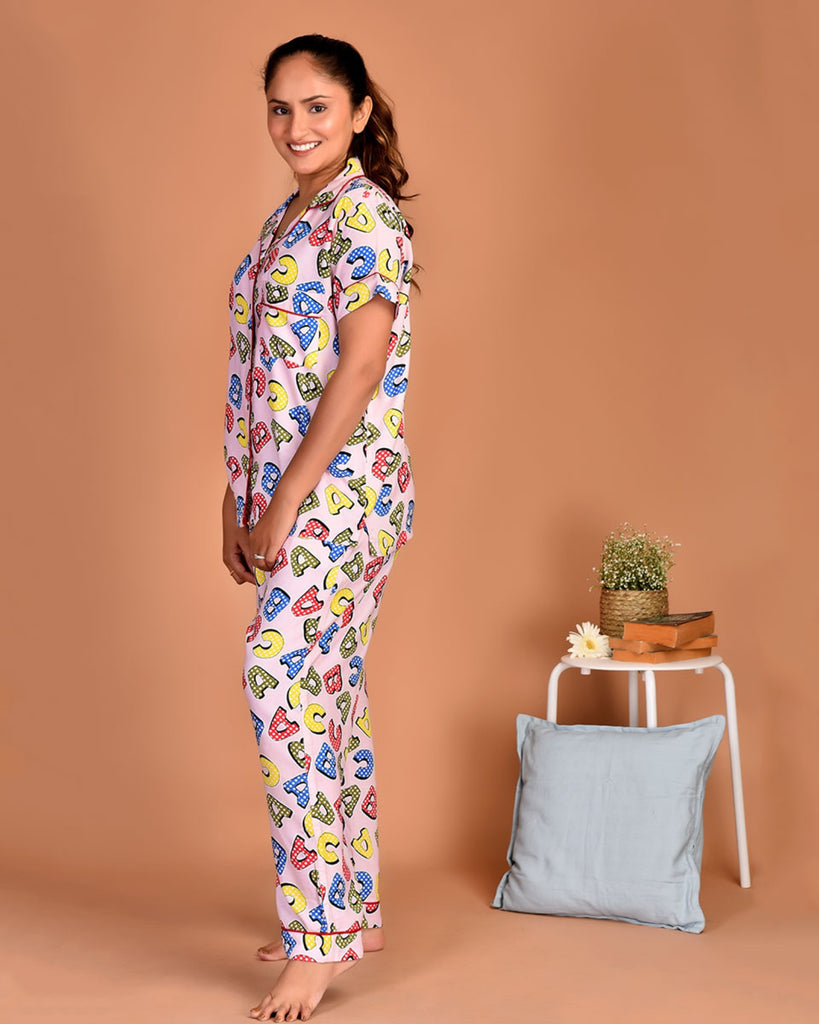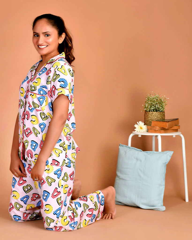 Crafted in soft cotton fabric, this notched collar pyjama set has the relaxed fit, which serves you comfort and ease.