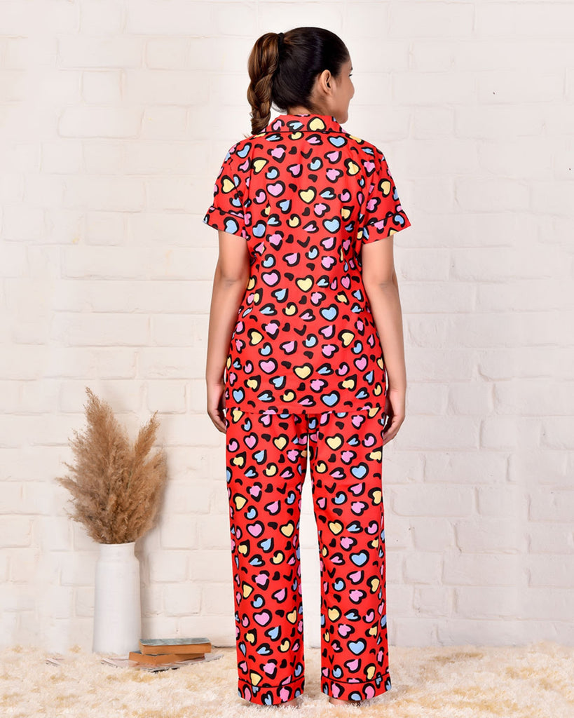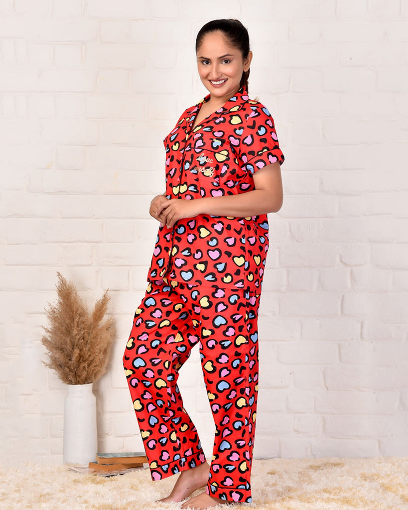 Dress up your bedtime with this stylish yet comfy Love In The Air pyjama set. Featuring a classic heart print, a warm red hue, and a notched collar, this sleepwear set is designed to keep you comfy all night long. Perfect for adding a hint of luxury to your evening routine.