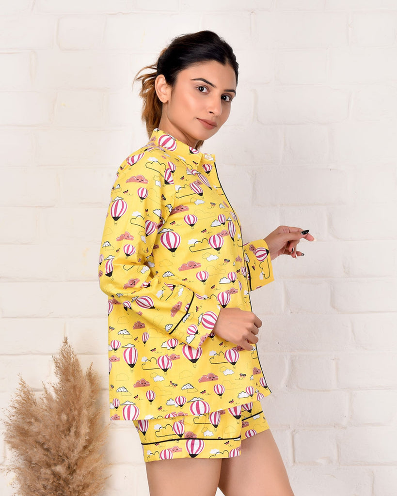 Light, airy and summery, this quirky print sleepwear set is offer you comfort and relaxation inside or outside of the bedroom.